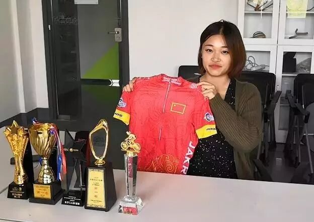 王姝凝身着自己为江南大学自行车车队设计的队服